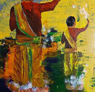 Inspired by the vibrant spirit of Holi, this abstract painting captures the fleeting movement of colors flying through the air—symbolizing joy, unity, and the moment when people and space dissolve into a shared celebration of life.