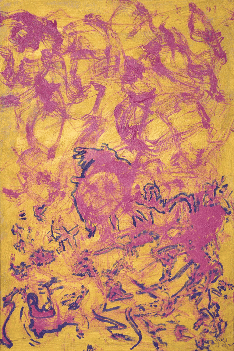 This painting shows strong, moving colors
